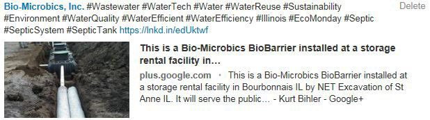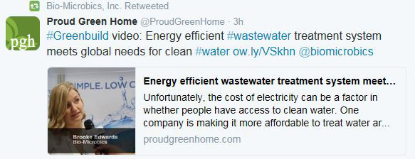 We get tagged and alerted to a lot of online articles, events and posts that deal with our industry.I find that I can quickly scan the 90+ magazines in the Water, Wastewater, & Construction industry that are talking about onsite wastewater and water recycling systems on social media faster than a search engine